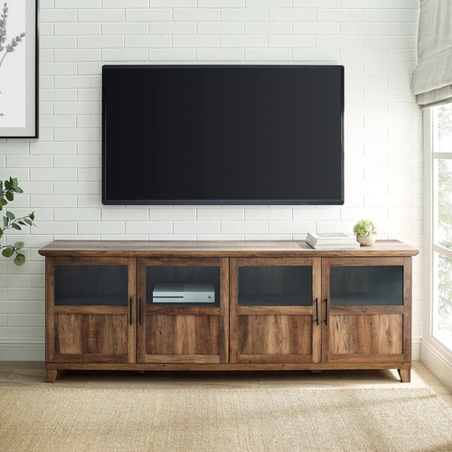 Amazon Com Walker Edison Farmhouse Barn Glass Door Wood Universal Tv Stand For Tv S Up To 64 Flat Screen Living Room Storage Cabinet Doors And Shelves Entertainment Center 58 Inch Rustic Oak